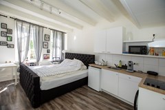 Op de tweede verdieping zijn twee ruime kamers gesitueerd met gezamenlijk gebruik van keuken en badkamer en een 2-kamerapaartement een kleine keuken en badkamer.