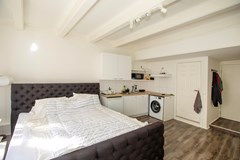 Eén ruim appartement met royaal dakterras en een studio voorzien van eigen badkamer en pantry.