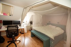 Tweede verdieping: Twee ruime kamers met gedeelde keuken en badkamer. Een zelfstandig 2-kamer appartement met eigen keuken en badkamer