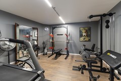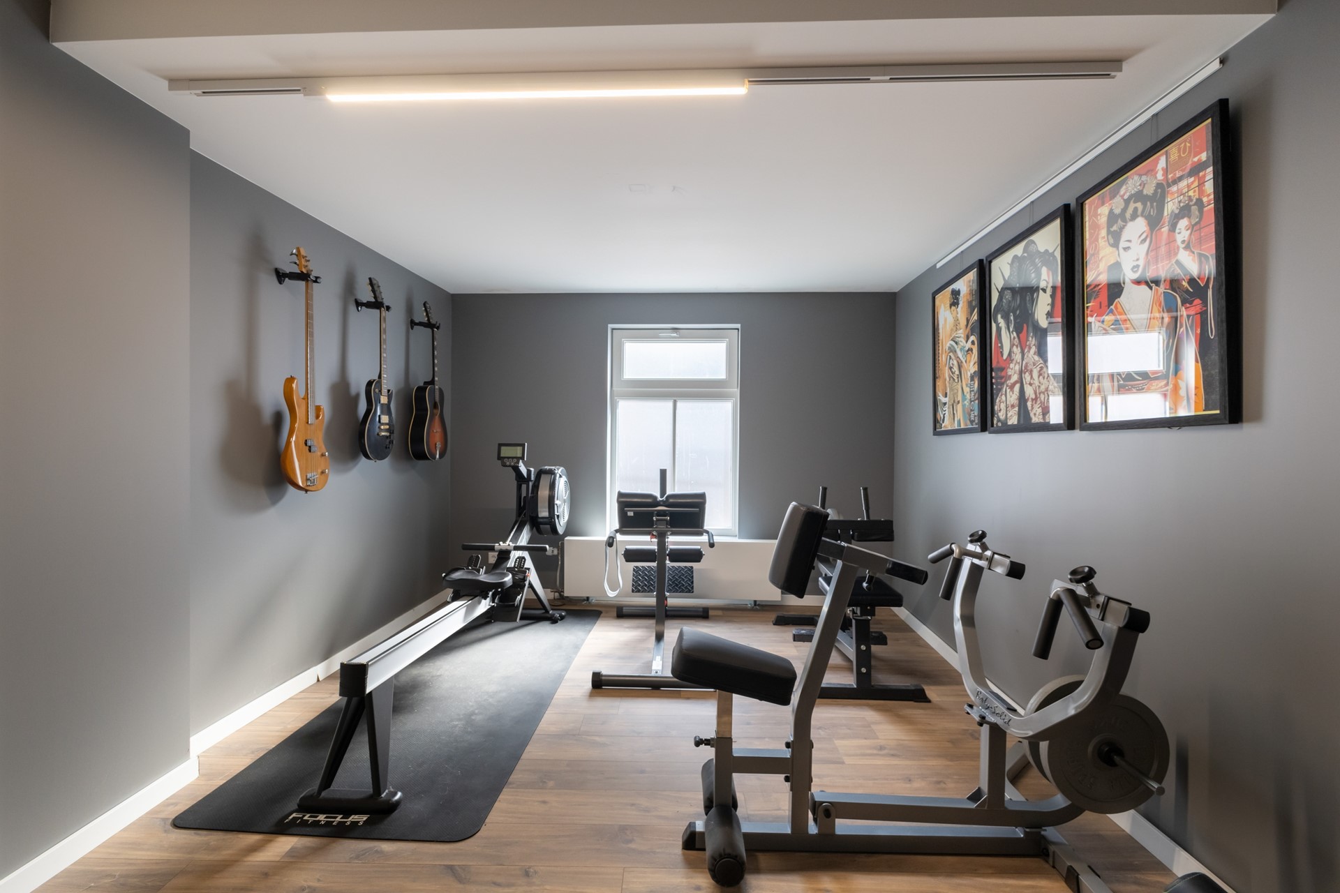 Currently, part of the ground floor (approx. 35 m²) houses a fully equipped fitness area, suitable for private use, company fitness, or as practical storage/additional space.
