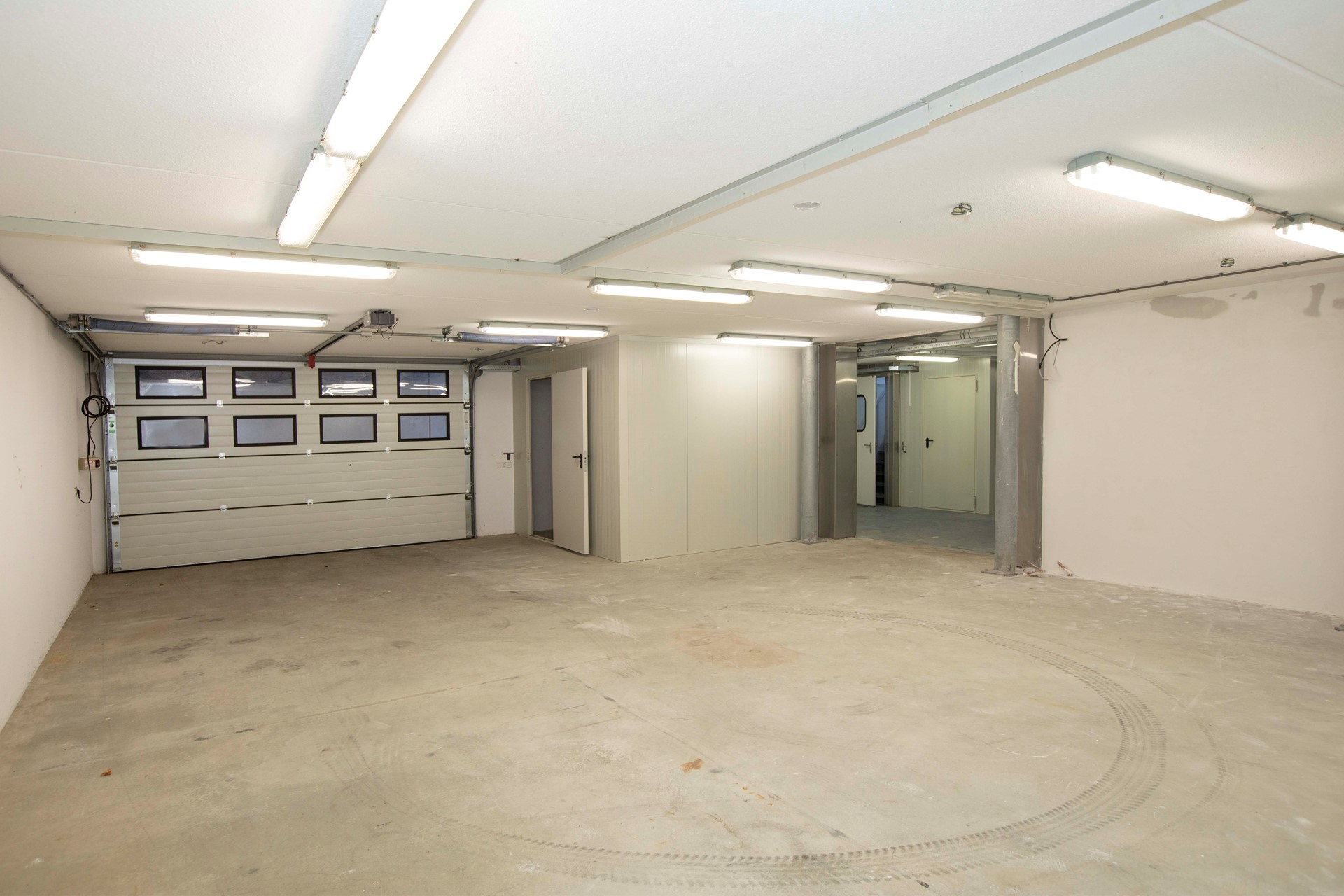 De garage is voorzien van een elektrische garagedeur, grindvloer met kruipluik en aan de buitenzijde een laadstation. Aan de achterzijde van de garage is de berging.