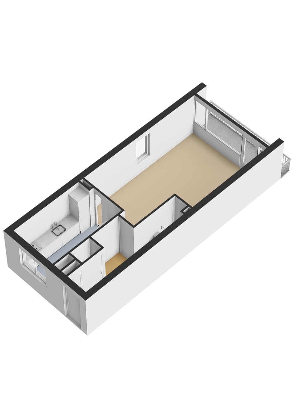 De woonkamer is een lichte en uitnodigende ruimte dankzij de grote raampartij in de achtergevel én het extra zijraam, wat zorgt voor een fijne daglichtinval. Aan de voorzijde bevindt zich de knusse zithoek, waarvandaan u via een loopdeur toegang heeft tot het zonnige balkon.